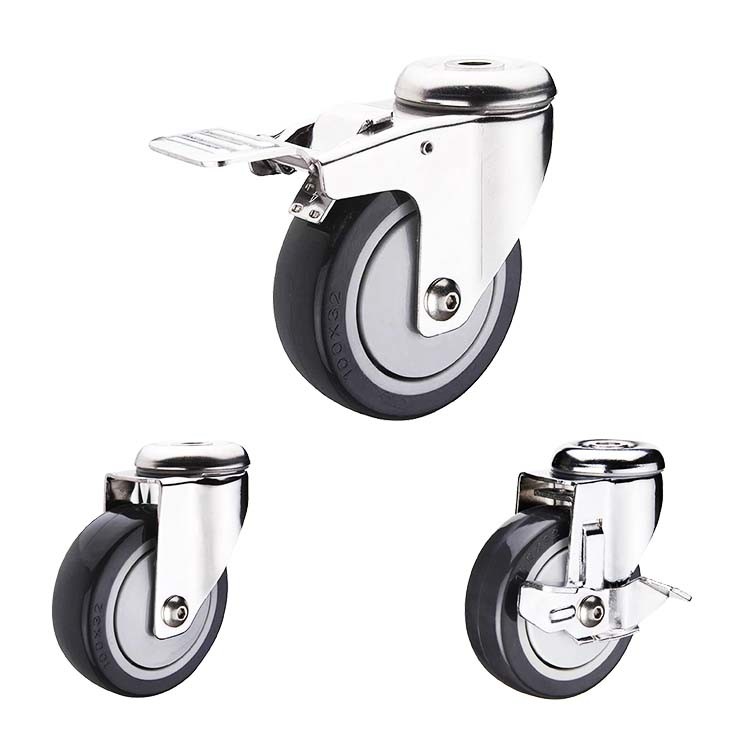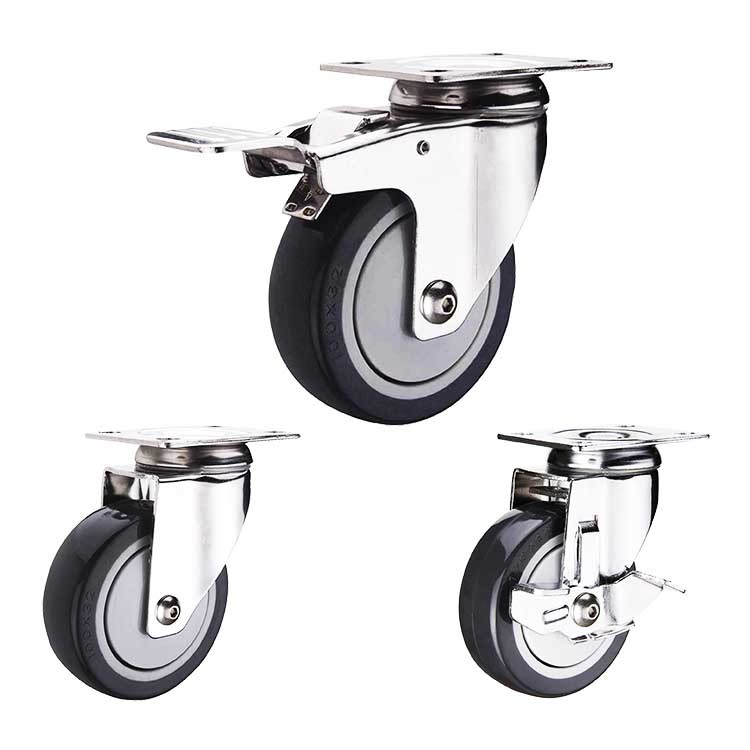 x| Όνομα προϊόντος | 300 λίβρες μεσαίου τύπου περιστρεφόμενοι τροχοί πέδησης 5 ιντσών υψηλού φορτίου από πολυαιθάνιο | Στυλ | Μεσαίας ισχύος γκρίζο PU τροχίσκων |