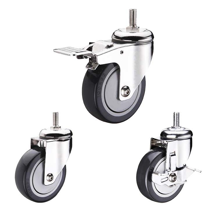 Μεσαίου μεγέθους 5 ιντσών πολυουρεθάνιο σε κυλιόμενους τροχούς με διπλή κλειδαριά.